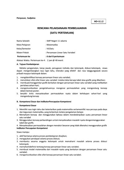 Mengenal variabel, koefisien, konstanta, dan suku. Berkaitan dengan persamaan linear satu variabel ke dalam model matematika. Rencana pelaksanaan pembelajaran (rpp) satuan pendidikan : Merupakan rpp luring kelas vii semester 1 mata pelajaran matematika dengan materi persamaan dan pertidaksamaan linear satu variabel, dengan metode . Vii/ 1 (satu) mata pelajaran :