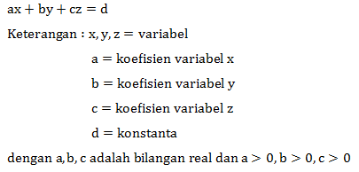 03/03/2022 · sistem persamaan linear tiga variabel (spltv) adalah kumpulan persamaan linear yang mempunyai solusi (atau tidak mempunyai solusi) yang sama untuk semua persamaan yang terdiri dari tiga variabel.
